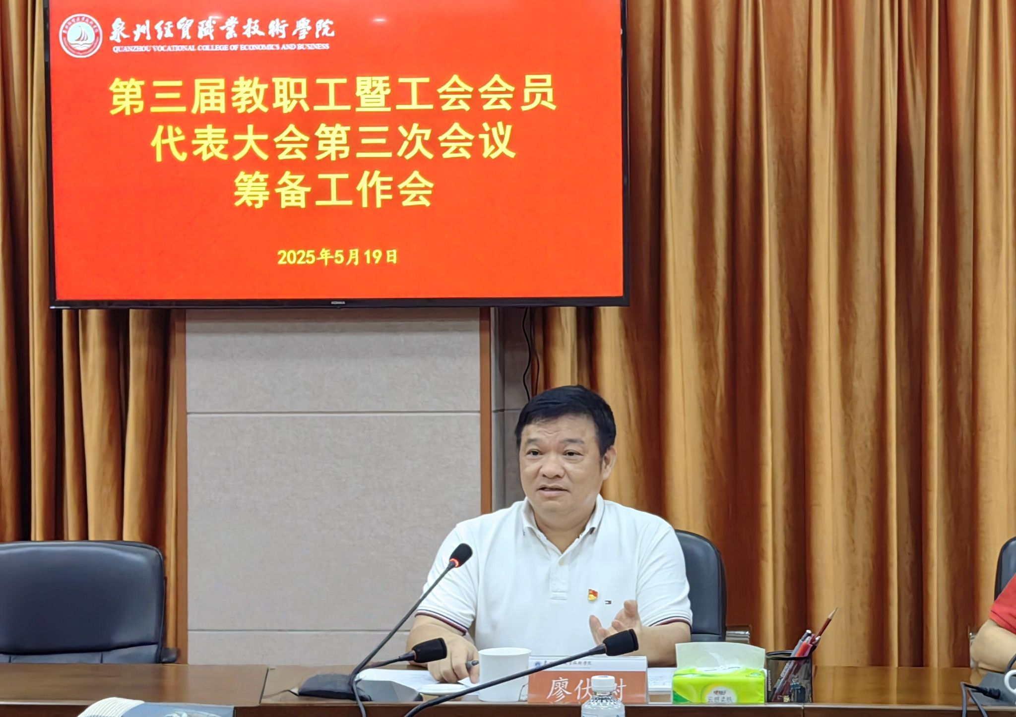 廖伏树对筹备工作提出三点要求:一是提高政治站位,深刻认识“双代会”的重要意义。本次会议议题事关教职工切身利益和学校长远发展,全体筹备组成员要充分认识会议的政治性、规范性和严肃性,以高度的责任感和使命感投入工作,确保大会开出高质量、开出新气象。二是强化责任担当,高标准完成筹备任务。本次大会筹备时间紧、任务重、要求高,各工作组要严格按照《筹备工作方案》分工,倒排工期、挂图作战,确保每项任务落实到位。三是严肃工作纪律,确保大会规范有序召开。一要严明政治纪律,二要严把程序规范,三要注重实效导向,切实将教职工的智慧和力量凝聚到推动学校高质量发展上来。